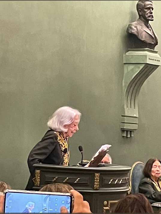“Emocionada, tomo posse da cadeira número 17. Sou atriz, venho desta mística arte arcaica que é o teatro. Sou a primeira representante da cena brasileira a ser recebida nesta casa. Esse meu ofício expressa uma estranheza compreensão. A raiz dessa arte está na complexidade de só existir através do corpo e da alma de ator ou de uma atrizao trazer a literatura dramática para a verticalidade cênica”, acrescentou