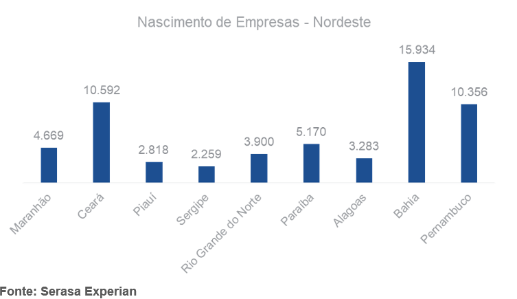 Considerando todos os segmentos, no primeiro mês do ano foram abertos 355.788 empreendimentos e, os de Serviços representaram 72,5% do total. No recorte por regiões, a Bahia foi o estado da Nordeste com o maior número de novas companhias, marcando 15.934 aberturas. O Maranhão aparece em quarto lugar, com 4.669.