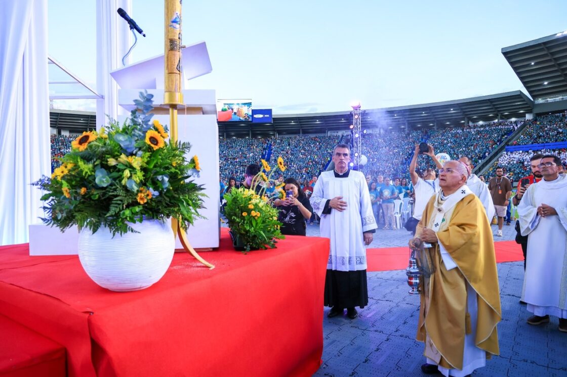 “Chegamos ao ponto alto do nosso grande Corpus Christi. Foram muitos dias de trabalho e empenho de todas as equipes. No primeiro dia celebrando com a família, no segundo dia com os vizinhos, no terceiro com a comunidade, no quarto com o momento paroquial e o ponto alto com a celebração arquidiocesana de Corpus Christi, celebrando esse momento com a casa repleta e esse estádio se transformou num santuário”, comentou.